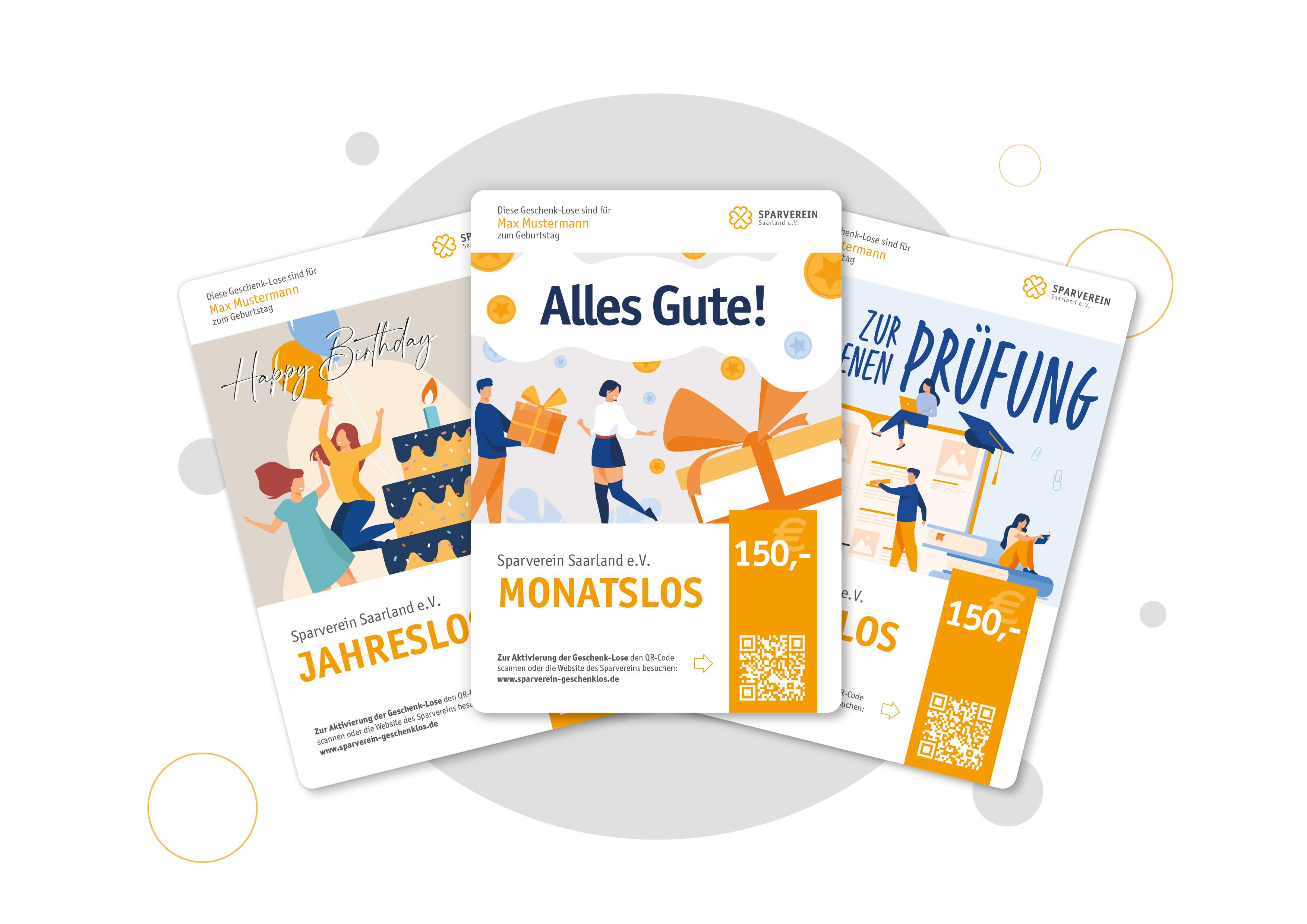 Du kannst als GewinnSparer beim Sparverein Saarland e.V. auch anderen mit GewinnSpar-Losen als Geschenk eine Freude machen. Dazu bieten wir eine einfache Online-Bestellstrecke mit verschiedenen Optionen an.